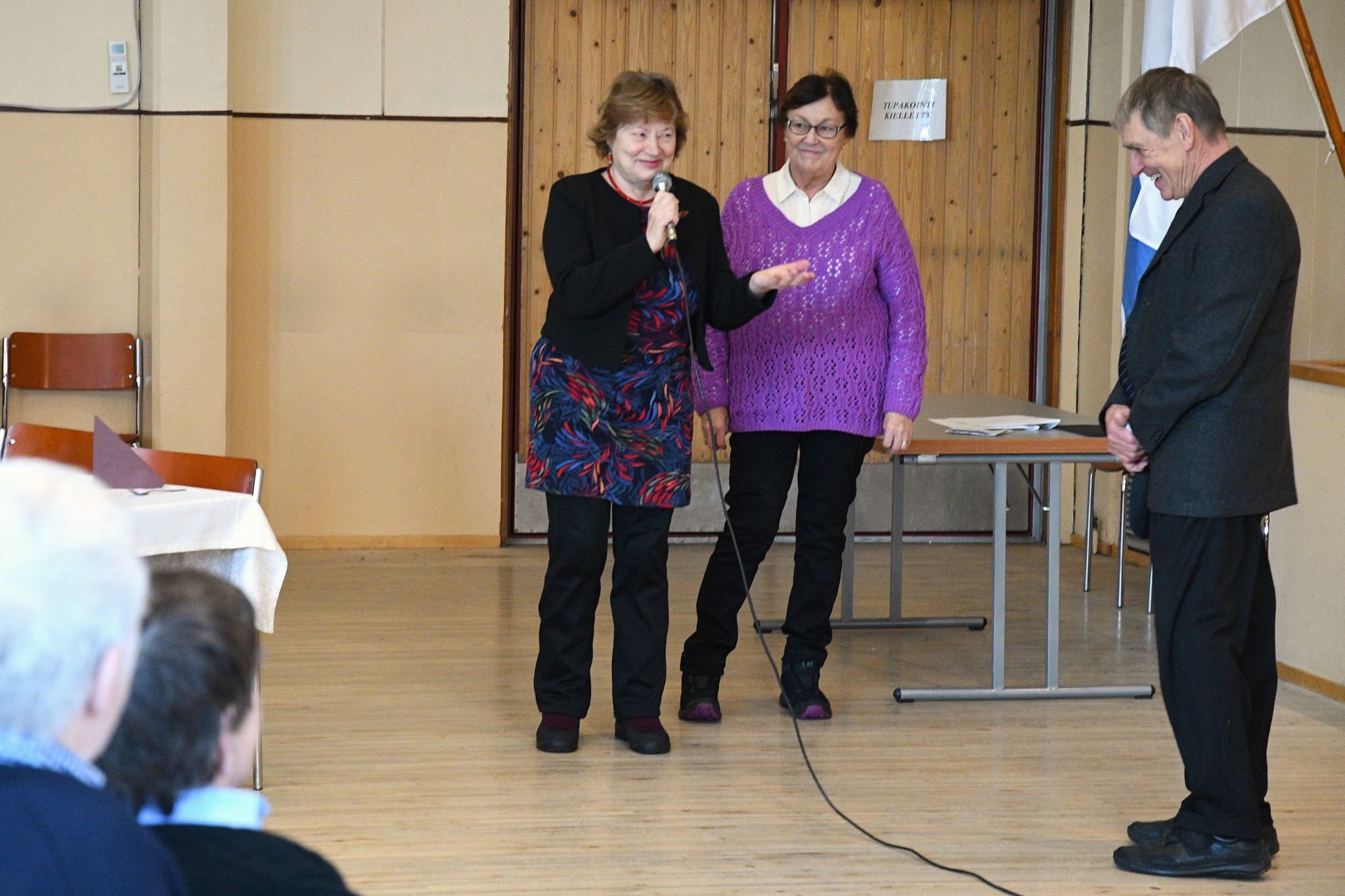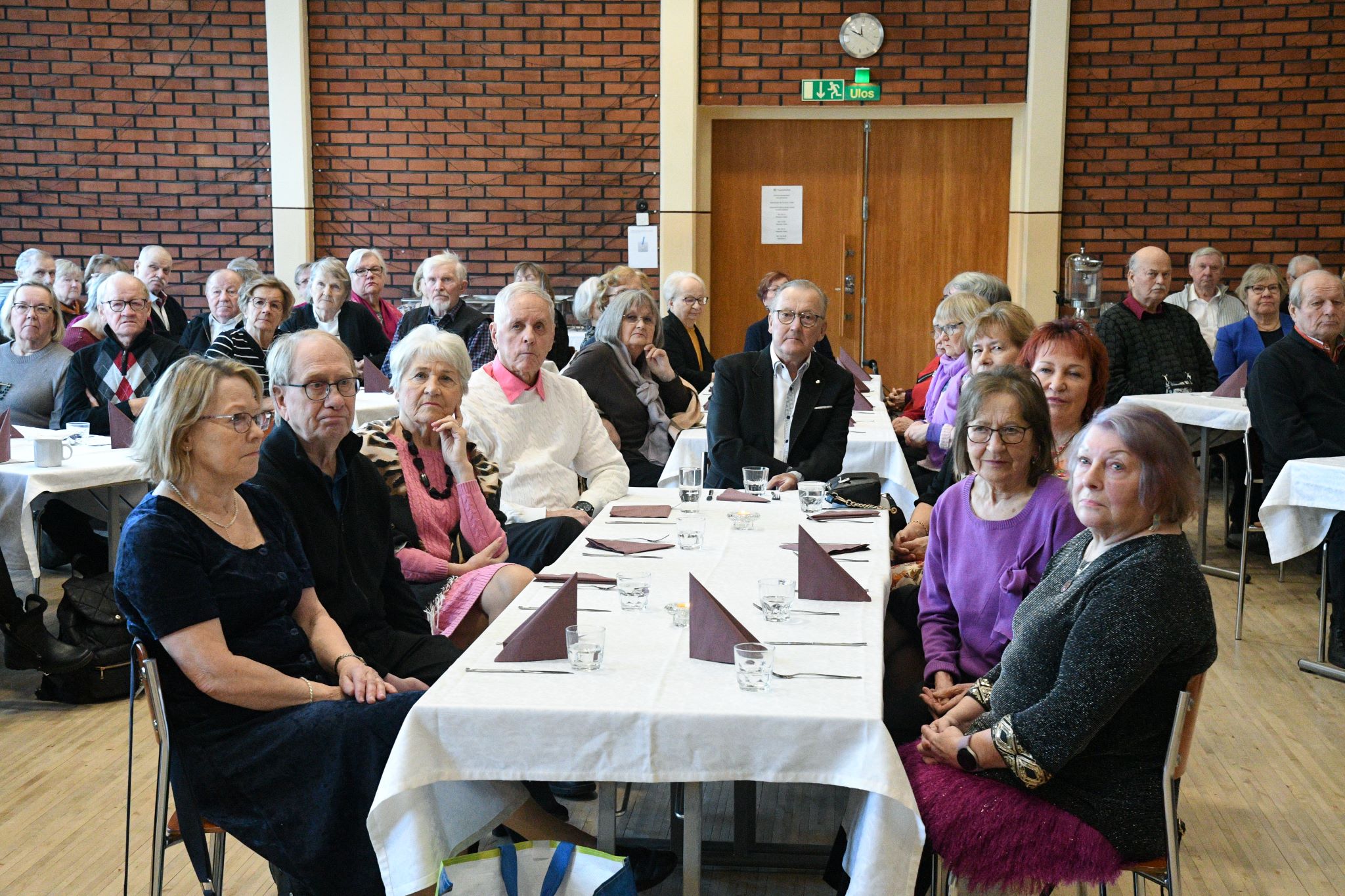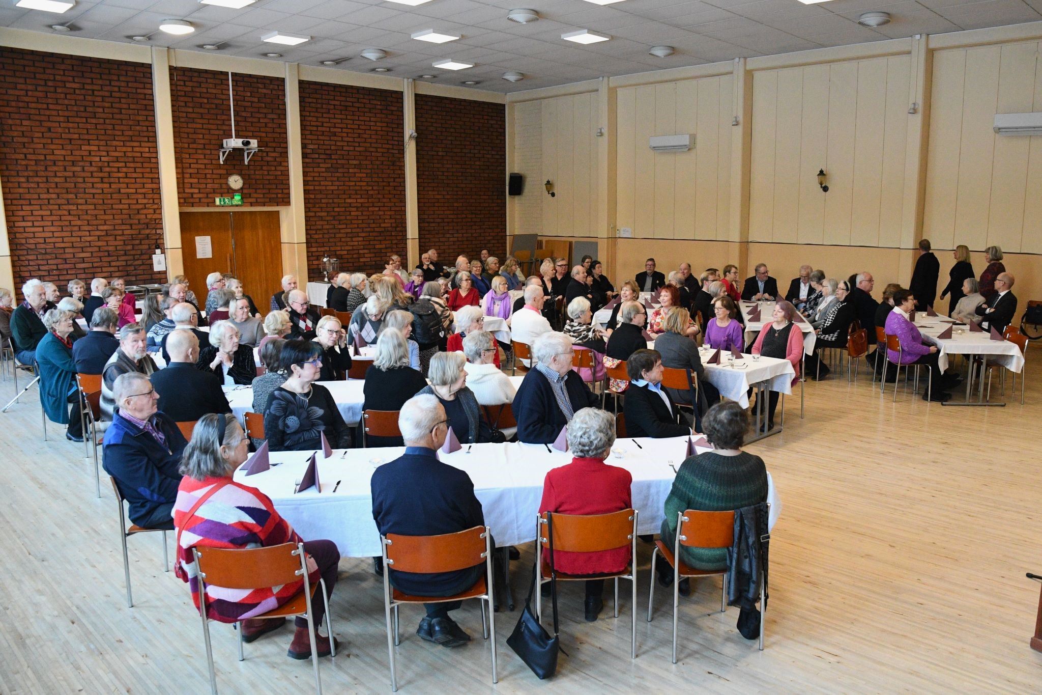 Juhlissa pidettiin puheita. Kaikki esitykset olivat kerholaisten toteuttamia. Puistokulma oli valmistanut maukkaat ruuat juhliin. osallistujia oli reilu sata. Kuvat on ottanut Tuomas Talvila Eläkeläiset ry:stä.