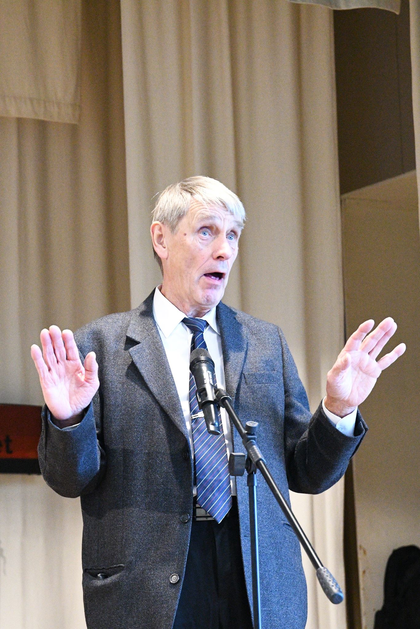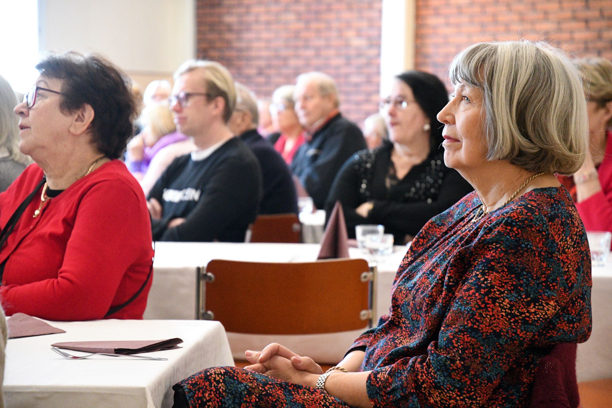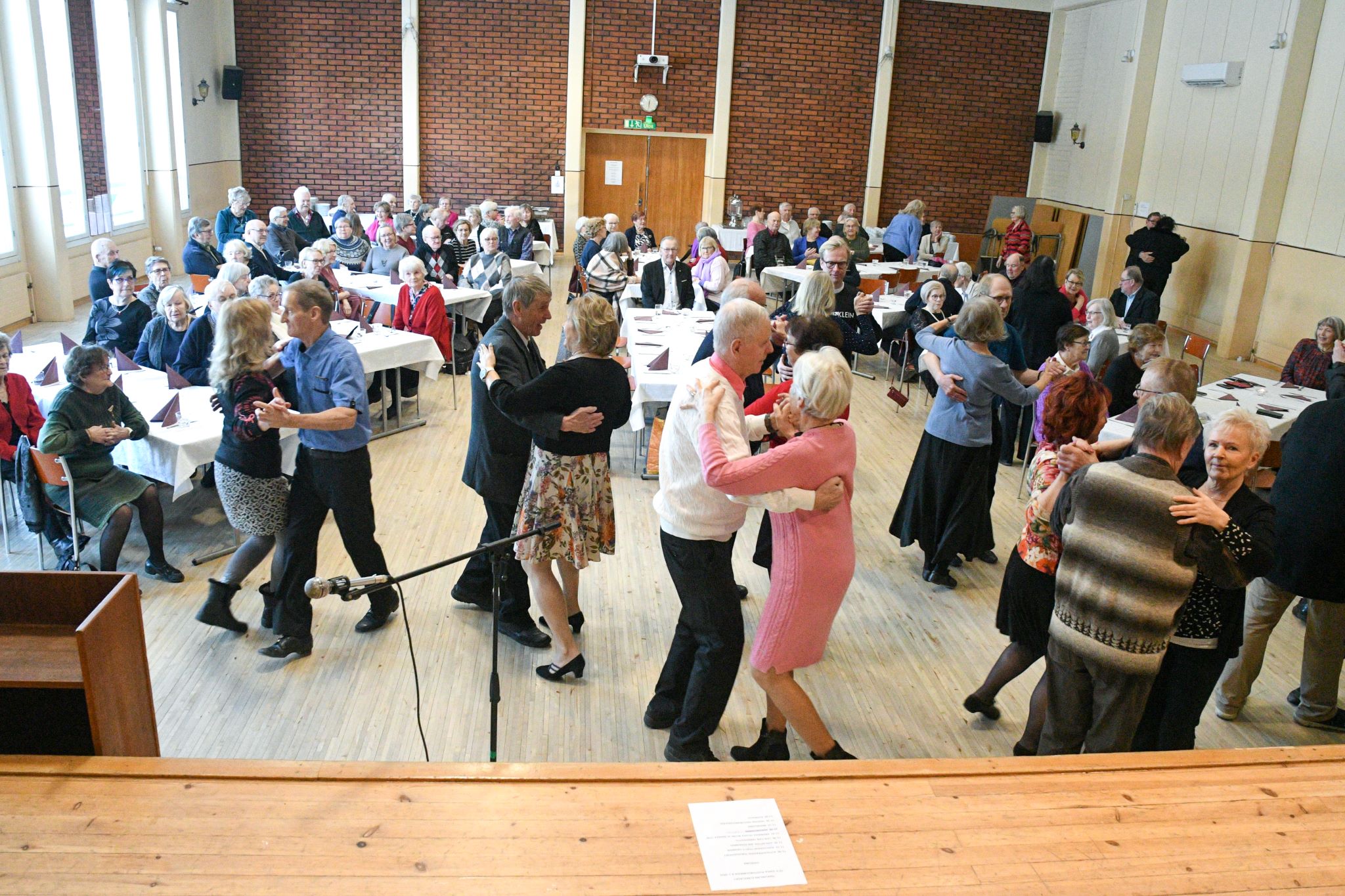 Juhlissa pidettiin puheita. Kaikki esitykset olivat kerholaisten toteuttamia. Puistokulma oli valmistanut maukkaat ruuat juhliin. osallistujia oli reilu sata. Kuvat on ottanut Tuomas Talvila Eläkeläiset ry:stä.